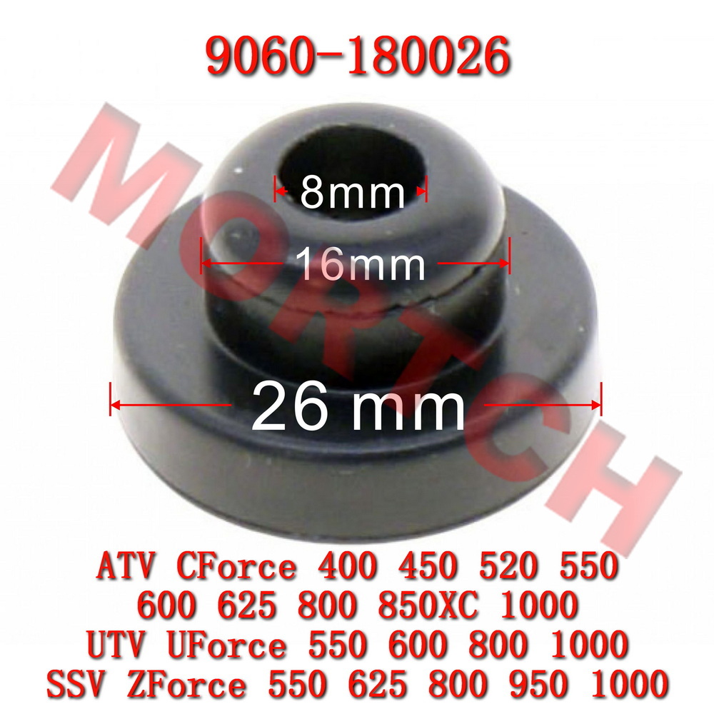 This is the CF Moto Radiator Pin Rubber Cap, OEM part number 9060-180026. This component is an important part of the radiator mounting system for CF Moto ATV, SSV, and UTV models, serving to secure the radiator while providing vibration damping.