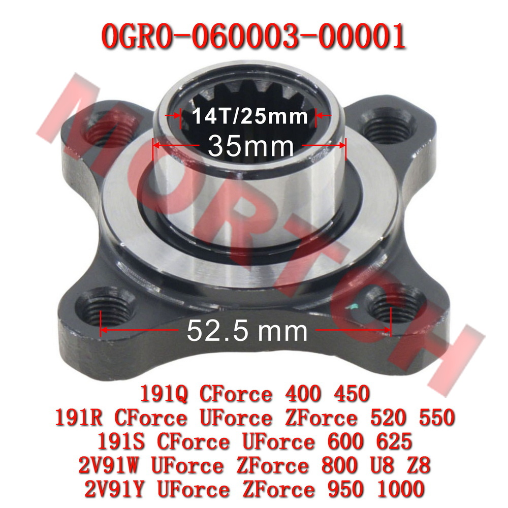 This product is an OEM-quality CF Moto coupler, part number 0GR0-060003-00001. The coupler (also known as drive flange) is a critical component in the drivetrain system, used to connect the drive shaft to the differential, bearing and transmitting torque while ensuring rotational accuracy.