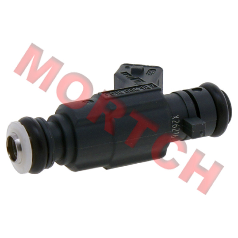 One end of fuel injector mounts into fuel injector seat, and the other end attaches to the injector cap, which connects with a fuel line. Fuel injector is controlled by ECU to inject fuel at stated time into the engine.