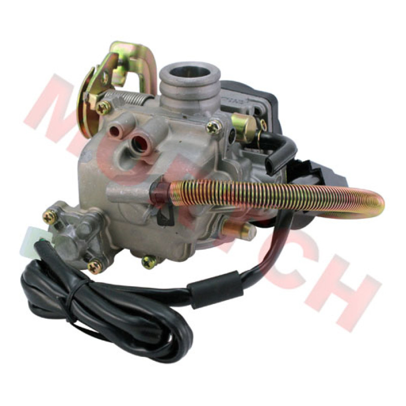80cc scooter CVK carburetor designed specifically for GY6 QMB139 4 stroke scooter, ATV, and dirt bike engines. This carburetor is equipped with an electric choke.