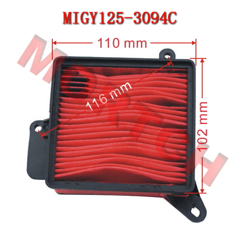 Quadrilateral air filter elements for 125cc GY6 QMI152/QMJ152 and 150cc GY6 QMI157/QMJ157 engines. Keep your 125cc GY6 QMI152/QMJ152 and 150cc GY6 QMI157/QMJ157 engine breathing freely with this stock triangle air filter.