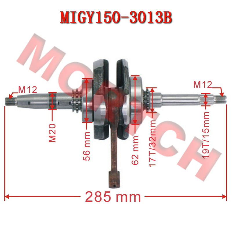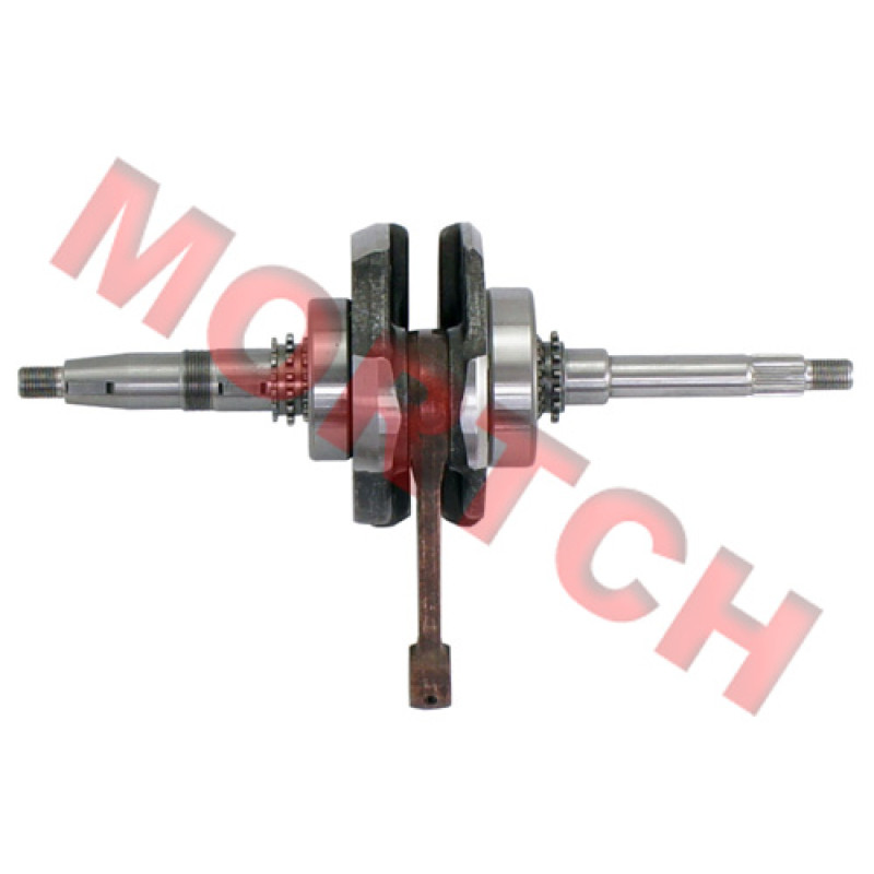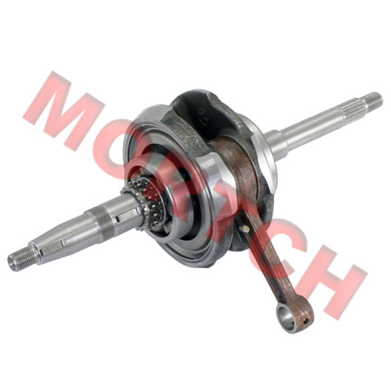 A replacement crankshaft in standard OEM quality for 125cc/150cc 4 stroke QJ153MI engines, you may can find from Jinlang, or other model with 157M engine. This crankshaft with 6305(62mm) and 63/22 P5(56mm) bearing.