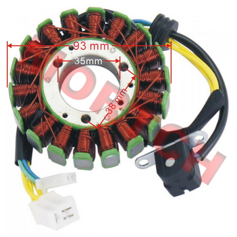 This an 18 pole, 18 coil, Generator Magneto for the 3 phase 4 stroke liquid cooled Yamaha YP250 LH170MN Linhai VOG 250-300cc engine.